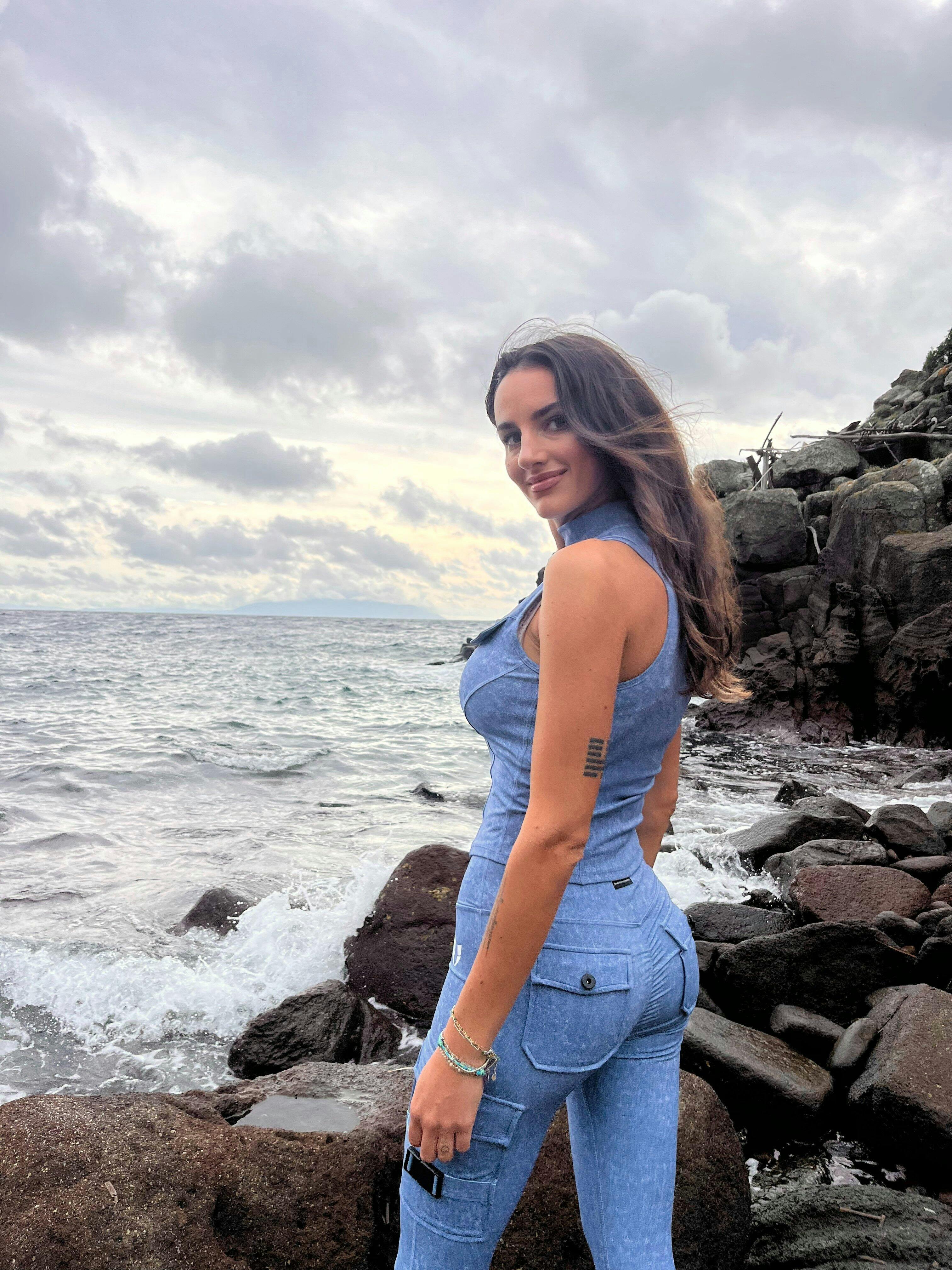 - Modella JOYCE: 177 cm / 5'9" di altezza — Indossa Taglia L (Top & Bottom)
