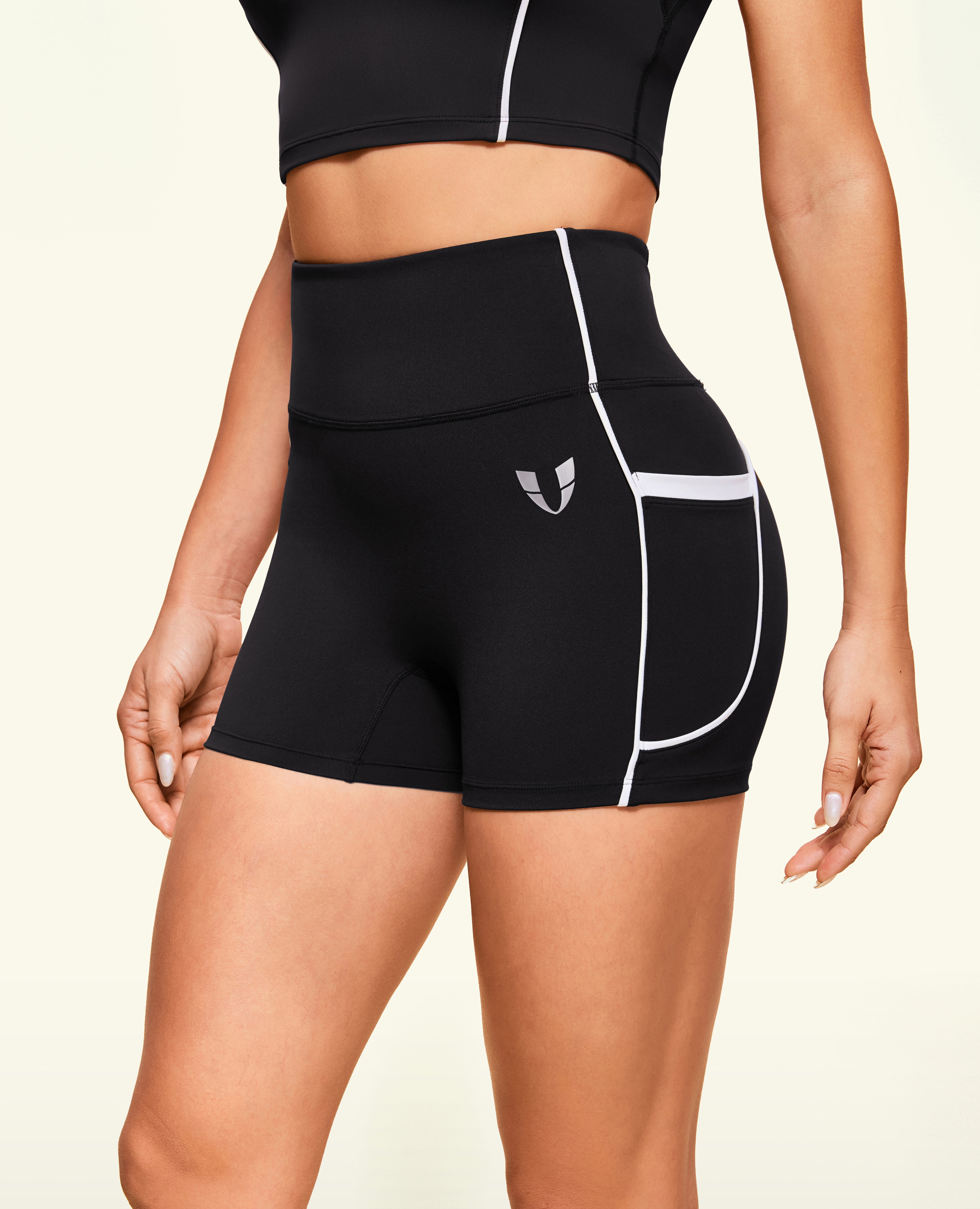 Reinforced with full-wrap inner mesh and grip tape, the waistband stays in place—no slipping, no distractions. Flattering contrast contour seams elongate your legs while adding bold visual appeal, enhancing curves and showcasing muscle tone.