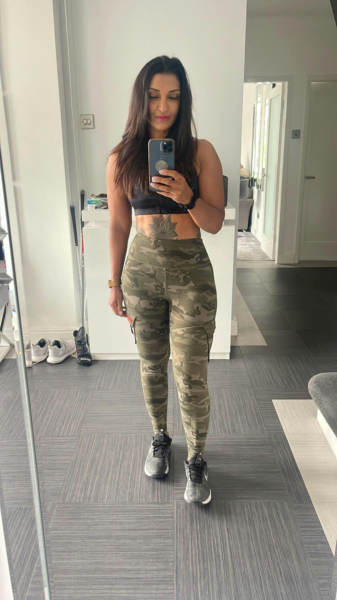 Furthermore, the design of these leggings is truly eye-catching. With a military-inspired design, you can showcase your personality whether you're working out or relaxing at the gym. The unique pocket design is both functional and stylish, allowing you to store your phone, keys, and other small items.